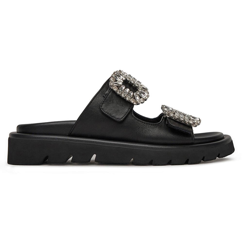 Pantofle ČERNÁ Přírodní kůže (useň) - Lícová EVA MINGE LILY-VII75-06-1 Czarny EVA MINGE Dámské/Obuv/Pantofle
