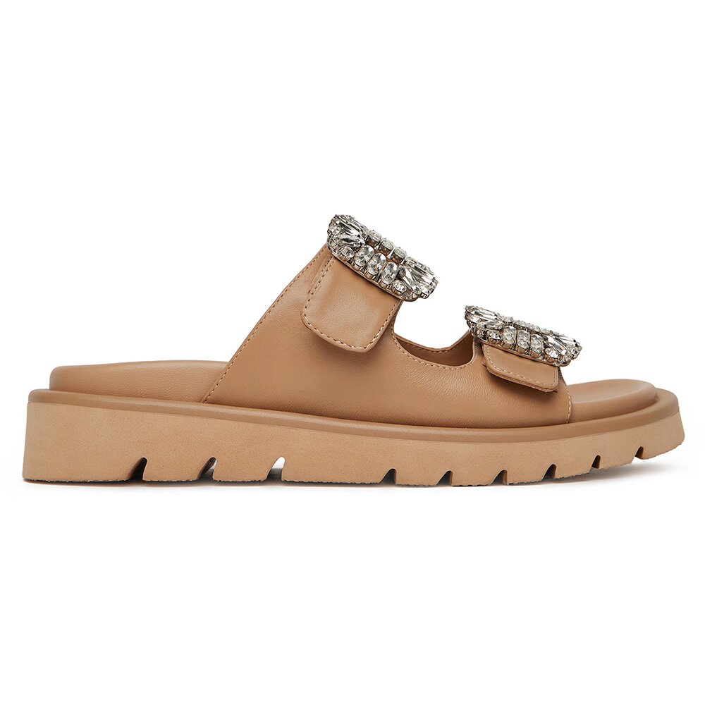 Pantofle BÉŽOVÁ Přírodní kůže (useň) - Lícová EVA MINGE LILY-VII75-06-1 Beżowy EVA MINGE Dámské/Obuv/Pantofle