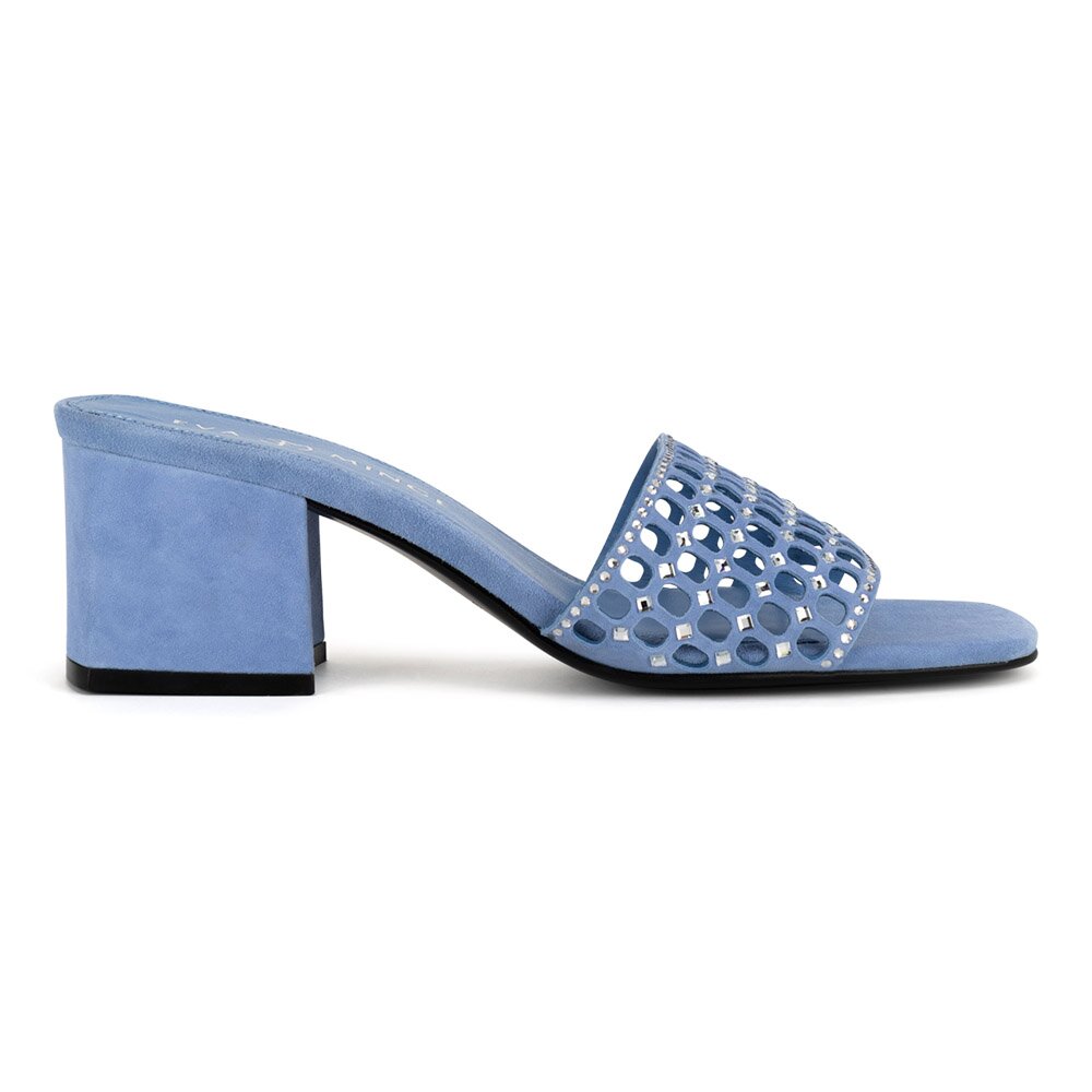 Pantofle BLANKYTNĚ MODRÁ Přírodní kůže pokrytá syntetickým materiálem EVA MINGE VERA-1559-2-1 Niebieski EVA MINGE Dámské/Obuv/Pantofle
