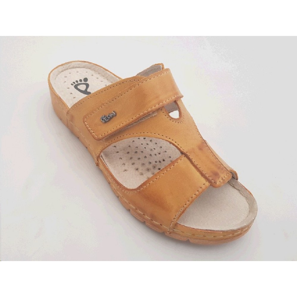 Pantofle PEON PP/125-22 dámské béžové Dámské pantofle v kvalitním koženém provedení se zvýšeným zdravotním účinkem. Stélka je vyměkčená, s prvky pro podporu příčné klenby, potažená 100% přírodní kůží zaručující hygienu a odvod par od chodidla při nošení. Zapínání na dva pásky na suchý zip vedoucí přes nárt. Velikosti 36-41 Barva béžová