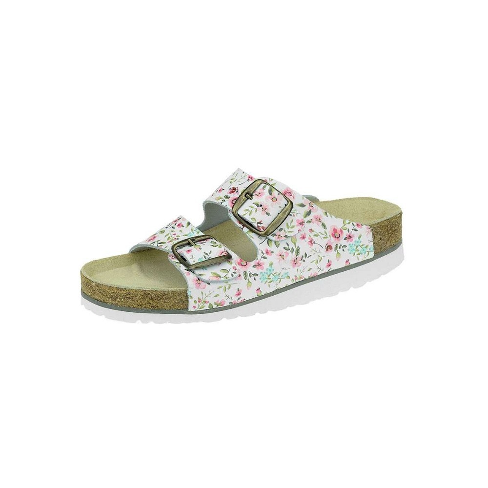 Pantofle PEON PE/125K-5F dámská bílá květovaná PRACOVNÍ ORTOPEDICKÁ PANTOFEL PE/125K-5F Korkové pantofle pro Vás vyrábíme v malých sériích v České republice. Zakládáme si na kvalitě a preciznosti ve výrobě, obuv Peon® vyrábíme s ohledem na pohodlí a zdraví Vašich nohou. Dámské odlehčené pantofle na nízkém klínku s korkovou mezipodešví a mechovkou tlumící otřesy při chůzi. Dámské pantofle v moderním stylu se dvěma koženými pásky s kovovými sponami umožňujícími přizpůsobení velikosti. Ortopedicky tvarované stélka potažená přírodní kůží a odlehčená podešev odolná proti uklouznutí Vám zajistí zdravé a pohodlné obutí na doma i do práce. Velikost 36-41