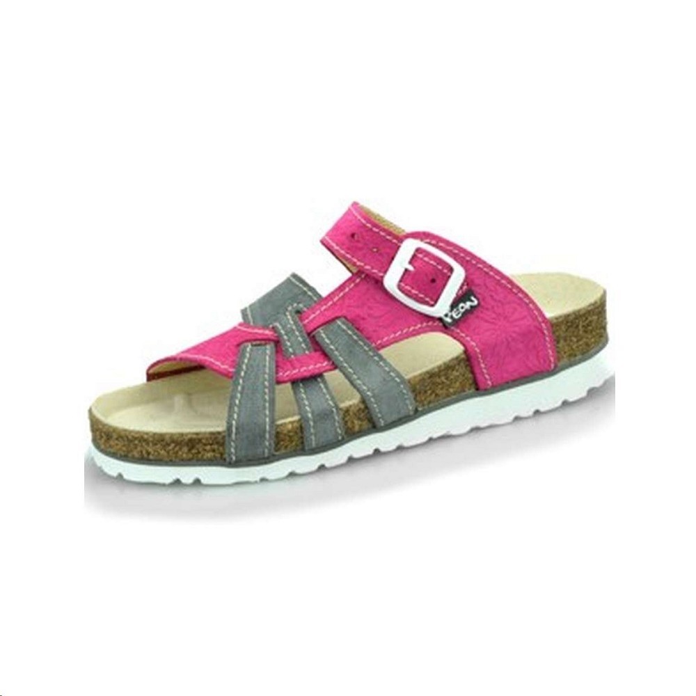Pantofle PEON PE/140-611 dámské šedo/růžové Korkové pantofle Celokožené odlehčené pantofle na nízkém klínku v moderním stylu s novinovým motivem. Podešev odolná proti uklouznutí, odlehčená korková mezipodešev, mechovka tlumící otřesy a upínací pásek s kovovou sponou umožňující nastavení ideální šířky obuvi. Ortopedicky tvarované stélka potažená přírodní kůží a odlehčená podešev odolná proti uklouznutí Vám zajistí zdravé a pohodlné obutí na doma, do školy i do práce. VelikostI 37-41