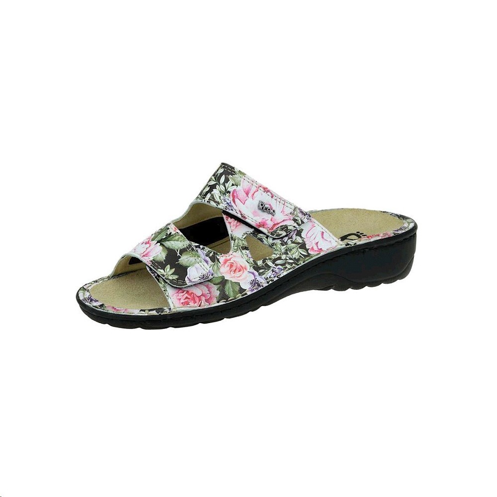 Pantofle PEON PP/120-14F dámské zdravotní květované Kožené pantofle Model PP/120 je vhodný i pro širší chodidla (šířka H), pro chodidla s haluxy a nabízí také možnost výměny stélky za svoji vlastní ortopedickou. Podešev pod patou je mírně vyvýšená, což uleví chodidlům při delším stání. Zapínání na dva pásky na suchý zip umožní upravení přesně podle Vašich potřeb. Na vnitřní straně jsou strategicky umístěné části tvořené z neoprenu, který je flexibilní i pro chodidla s haluxy. Výška podpatku 4 cm Určení obuvi Vycházková Svrchní materiál Kůže Vnitřní materiál Kůže Velikosti 36-41