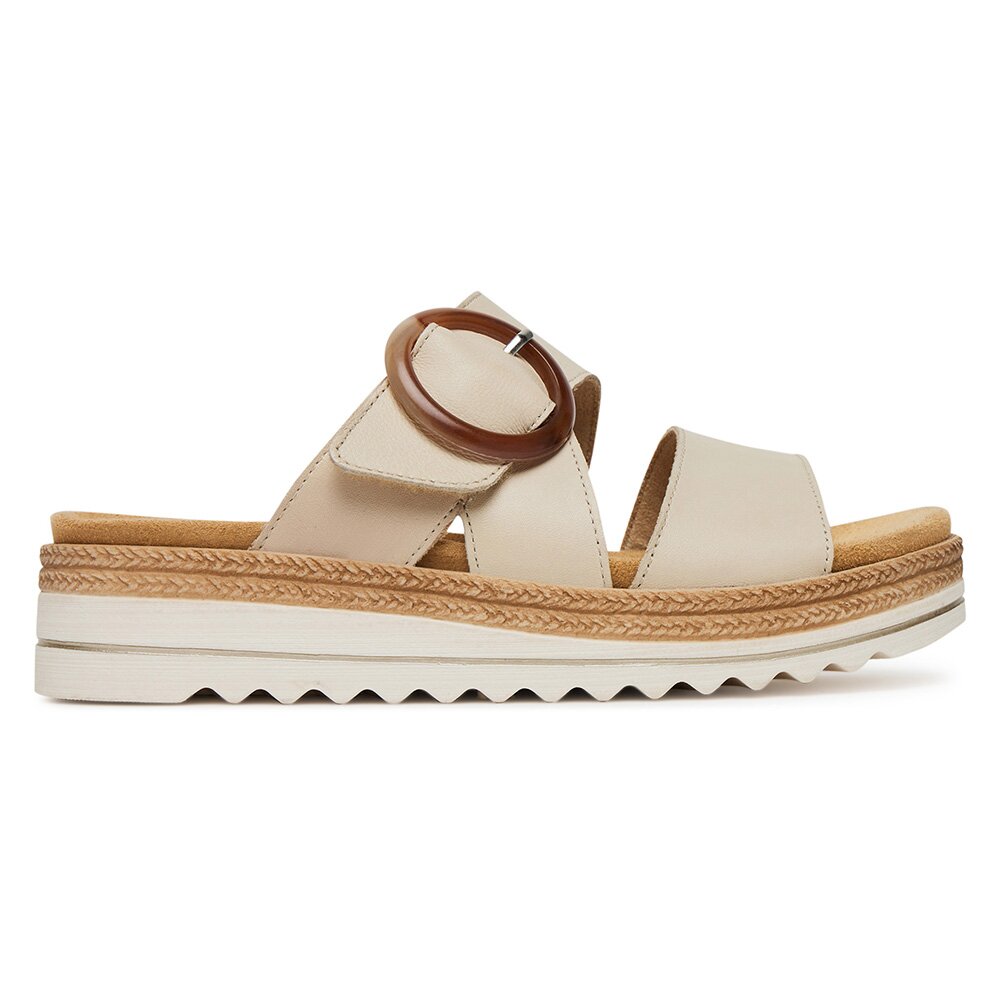 Pantofle BÉŽOVÁ Přírodní kůže (useň) - Lícová REMONTE D0Q51-80 BEŻOWY Remonte Dámské/Obuv/Pantofle