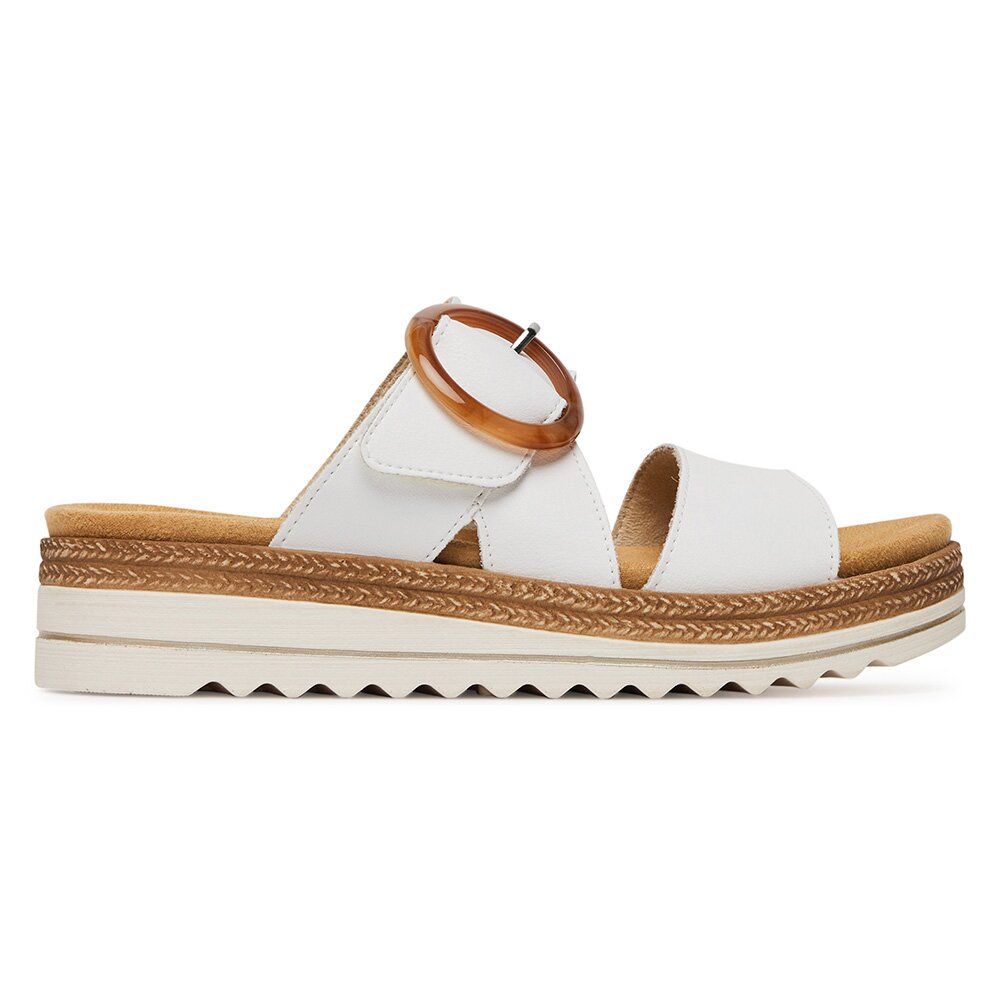Pantofle BÍLÁ Přírodní kůže (useň) - Lícová REMONTE D0Q51-82 BIAŁY Remonte Dámské/Obuv/Pantofle