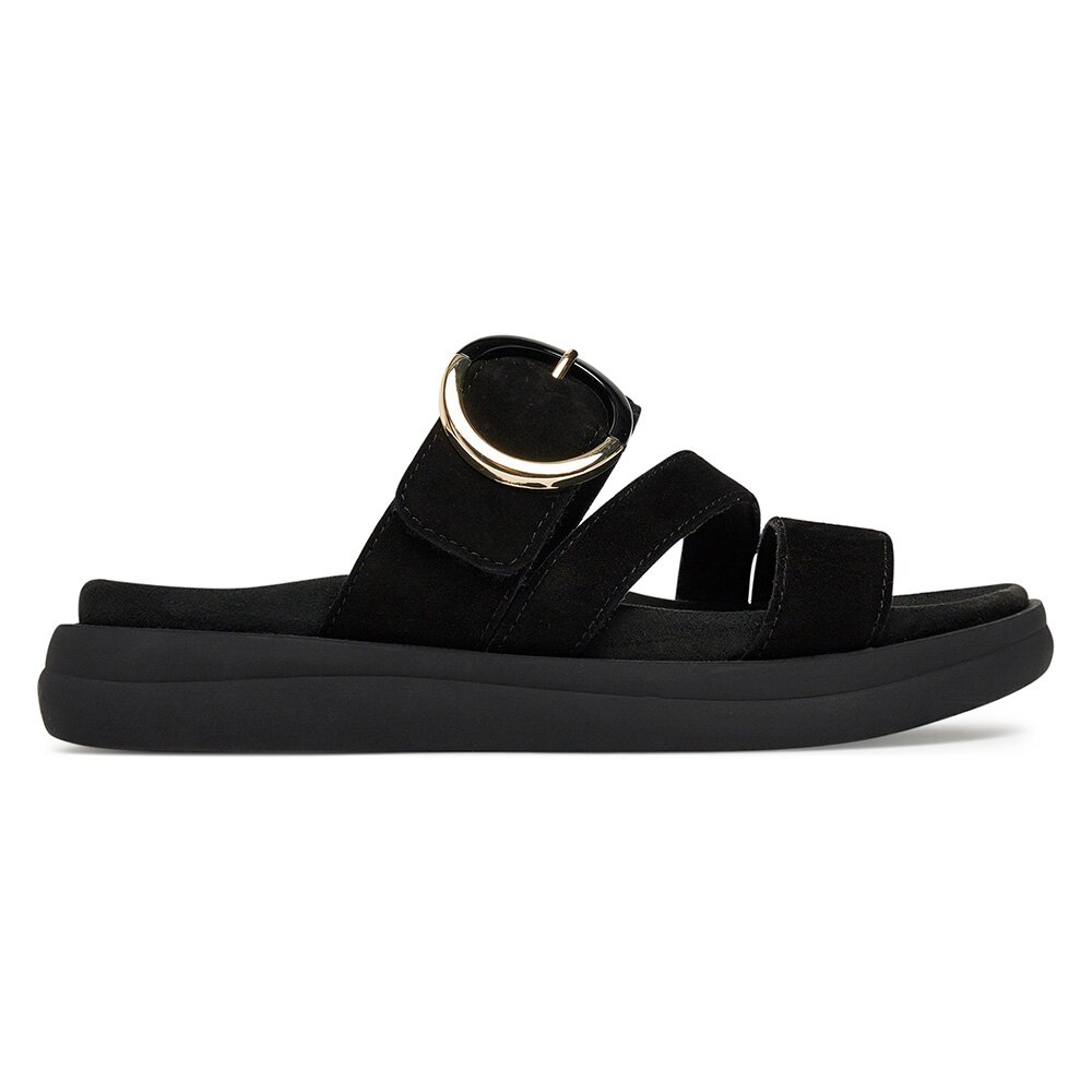 Pantofle ČERNÁ Přírodní kůže (useň) - Semiš REMONTE D2N53-02 CZARNY Remonte Dámské/Obuv/Pantofle