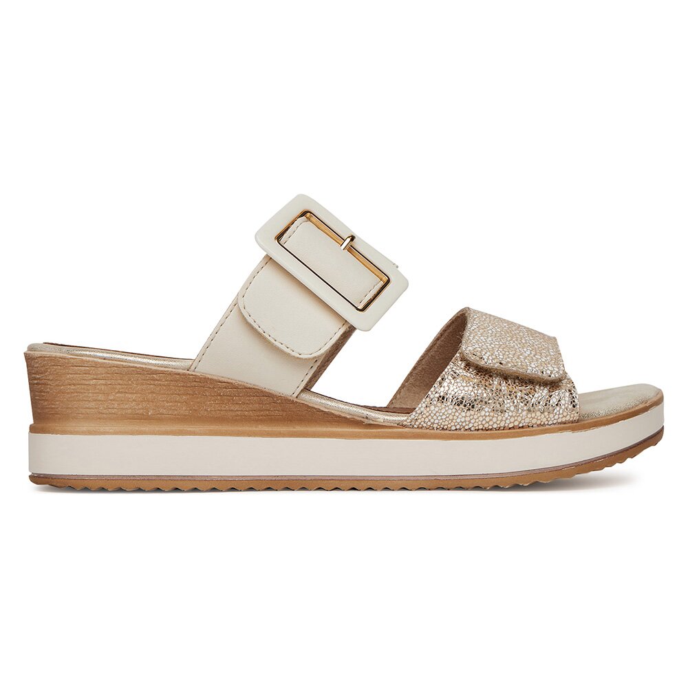 Pantofle ZLATÁ Syntetický materiál,Přírodní kůže (useň) - Semiš REMONTE D6463-60 ZŁOTY Remonte Dámské/Obuv/Pantofle