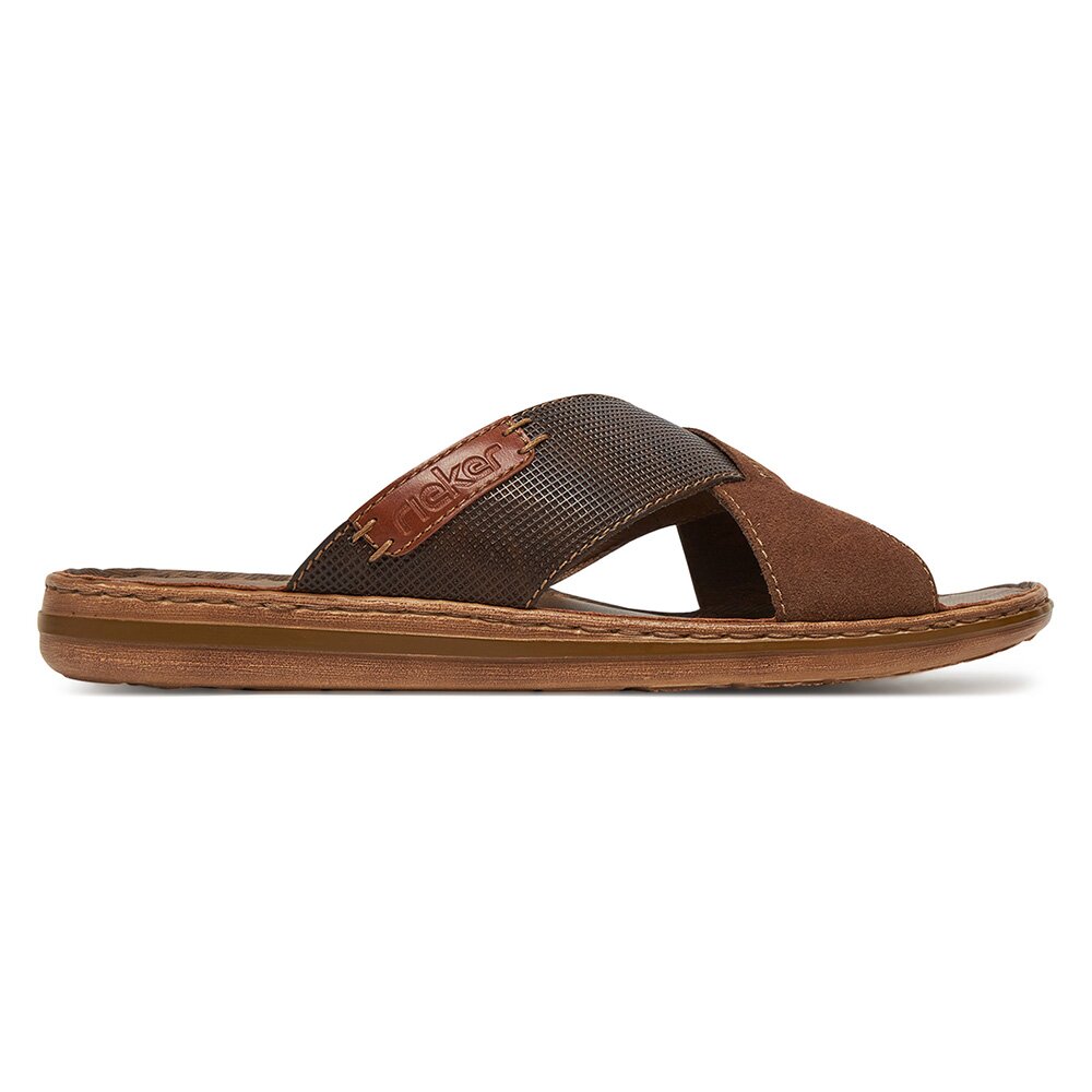 Pantofle HNĚDÁ Syntetický materiál,Přírodní kůže (useň) - Semiš RIEKER 21063-20 Brązowy Rieker Pánské/Obuv/Pantofle