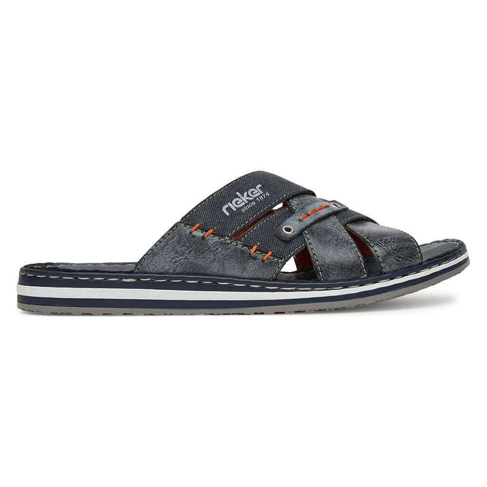 Pantofle TMAVĚ MODRÁ Látkový materiál,Syntetický materiál RIEKER 21599-14 Granatowy Rieker Pánské/Obuv/Pantofle