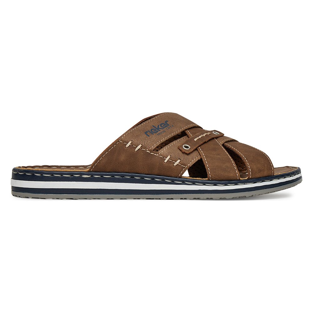 Pantofle BÉŽOVÁ Látkový materiál,Syntetický materiál RIEKER 21599-24 Beżowy Rieker Pánské/Obuv/Pantofle