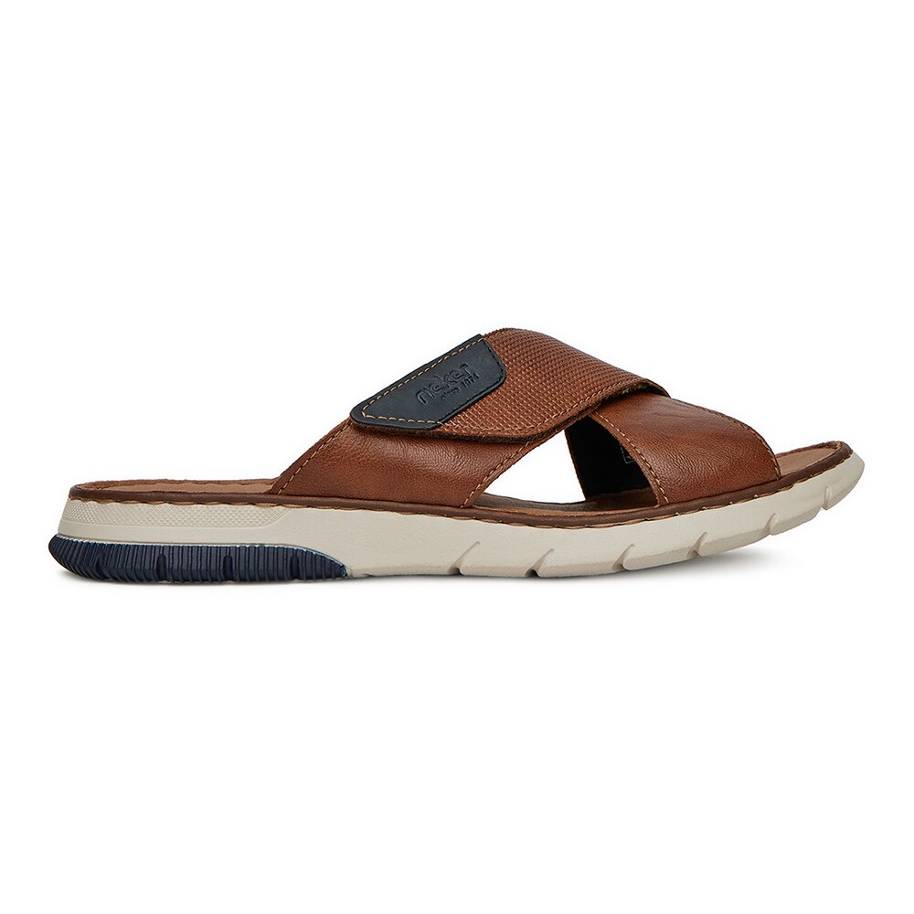 Pantofle HNĚDÁ Syntetický materiál,Přírodní kůže (useň) - Semiš RIEKER 25283-22 Brązowy Rieker Pánské/Obuv/Pantofle