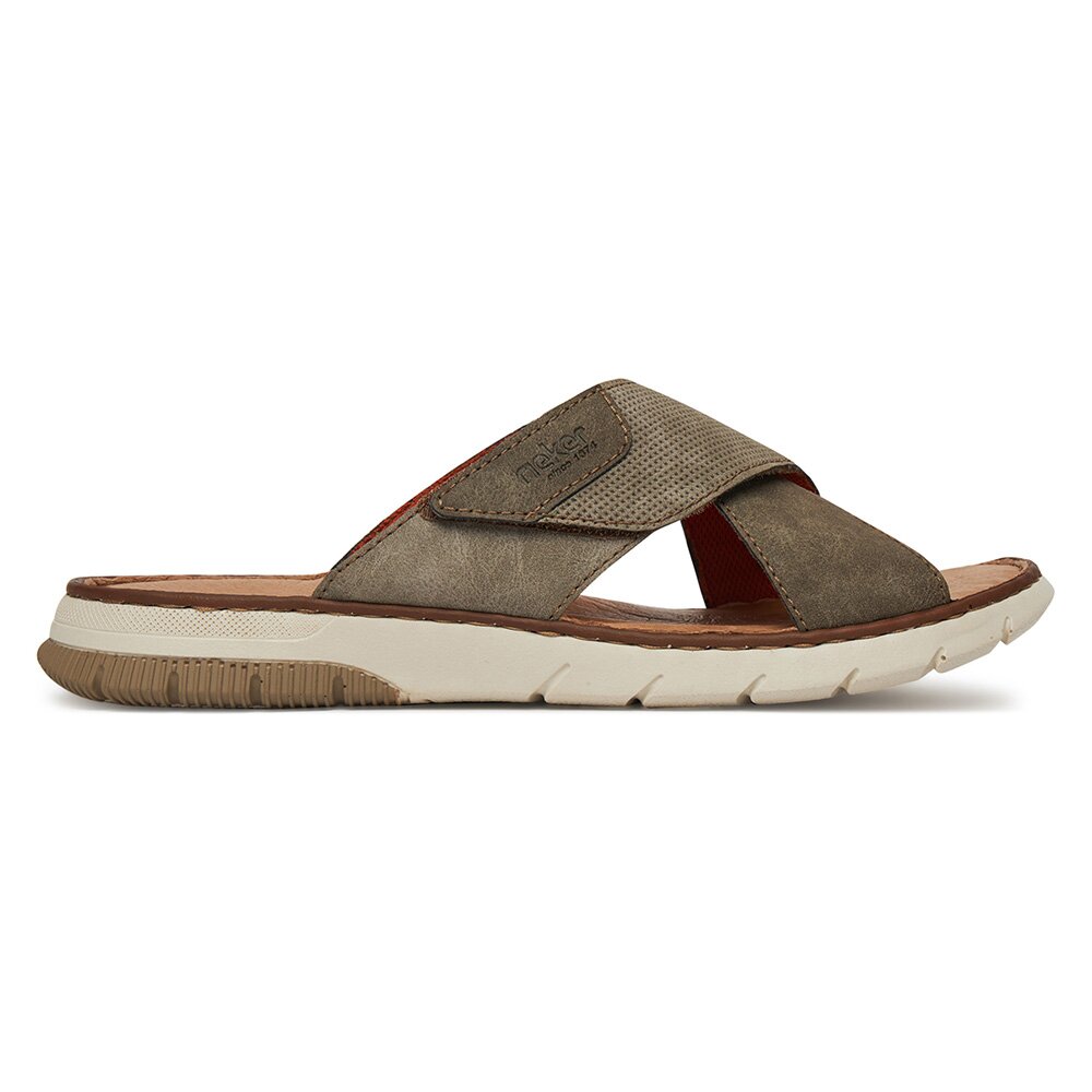 Pantofle TMAVĚ BÉŽOVÁ Syntetický materiál RIEKER 25283-25 Beżowy Ciemny Rieker Pánské/Obuv/Pantofle