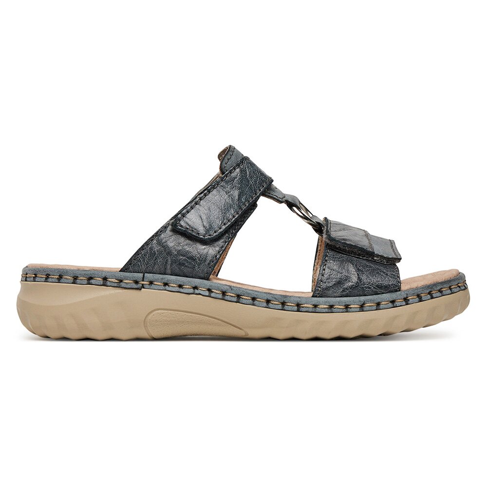 Pantofle BLANKYTNĚ MODRÁ Syntetický materiál,Přírodní kůže (useň) - Lícová RIEKER 60428-14 Niebieski Rieker Dámské/Obuv/Pantofle