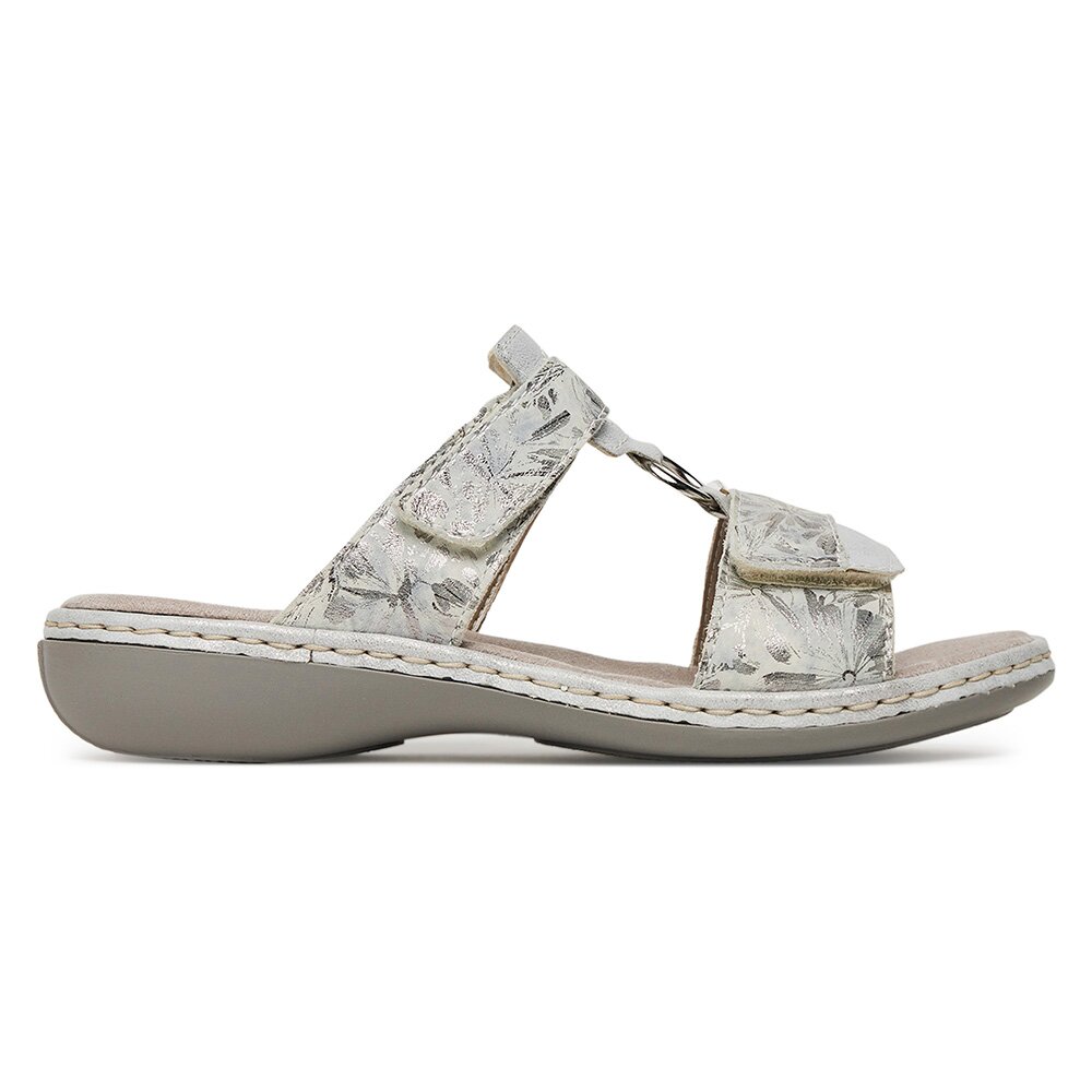 Pantofle STŘÍBRNÁ Syntetický materiál,Přírodní kůže (useň) - Semiš,Přírodní kůže (useň)/-Leštěná RIEKER 659X6-80 Srebrny Rieker Dámské/Obuv/Pantofle