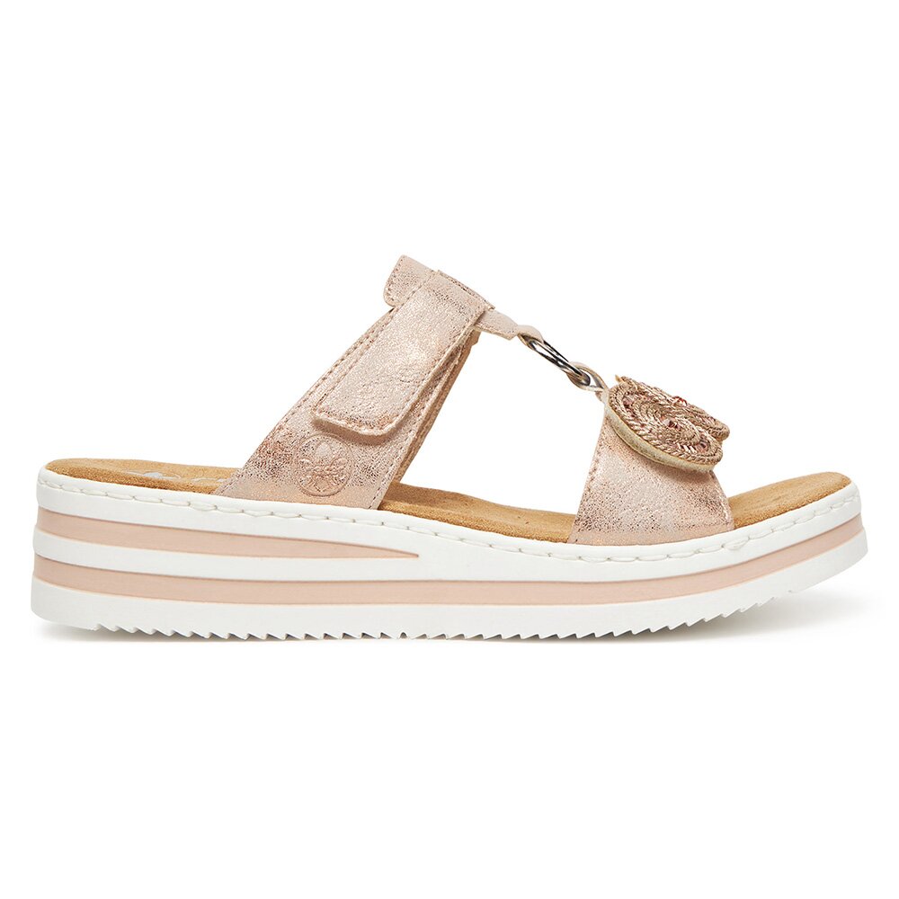 Pantofle ZLATÁ Syntetický materiál RIEKER V0200-90 Złoty Rieker Dámské/Obuv/Pantofle