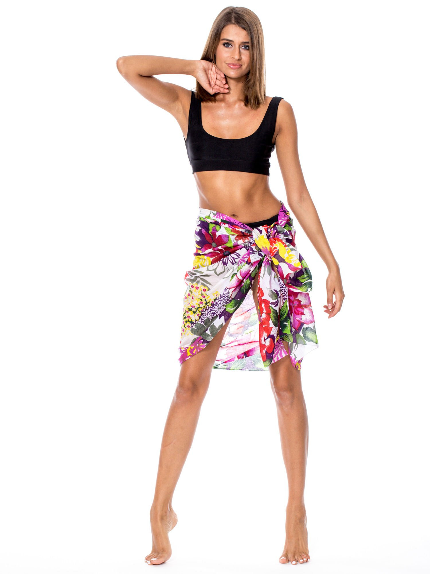 Bílý a fialovýbavlněný květinový šátek . Kód produktu: AT-PO-180300.75 dominantní vzor: květiny Rozměry: L. ok. 180 cm, šířka. ok. 95 cm
