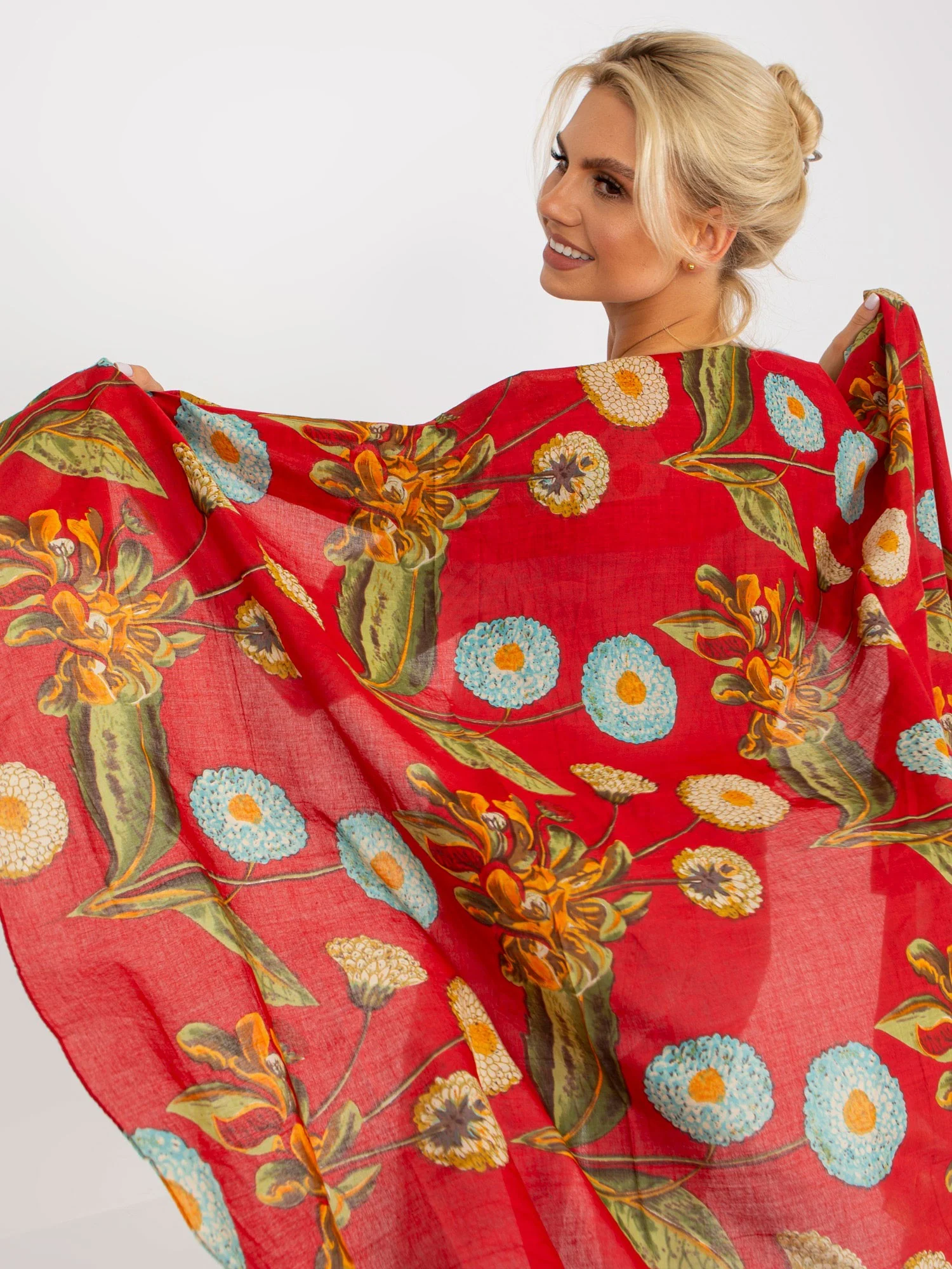 Červená květinová šála z bavlny . Kód produktu: AT-PO-75103.68dominantní design: květinyrozměry: délka cca 180 cm, šířka cca 106 cm