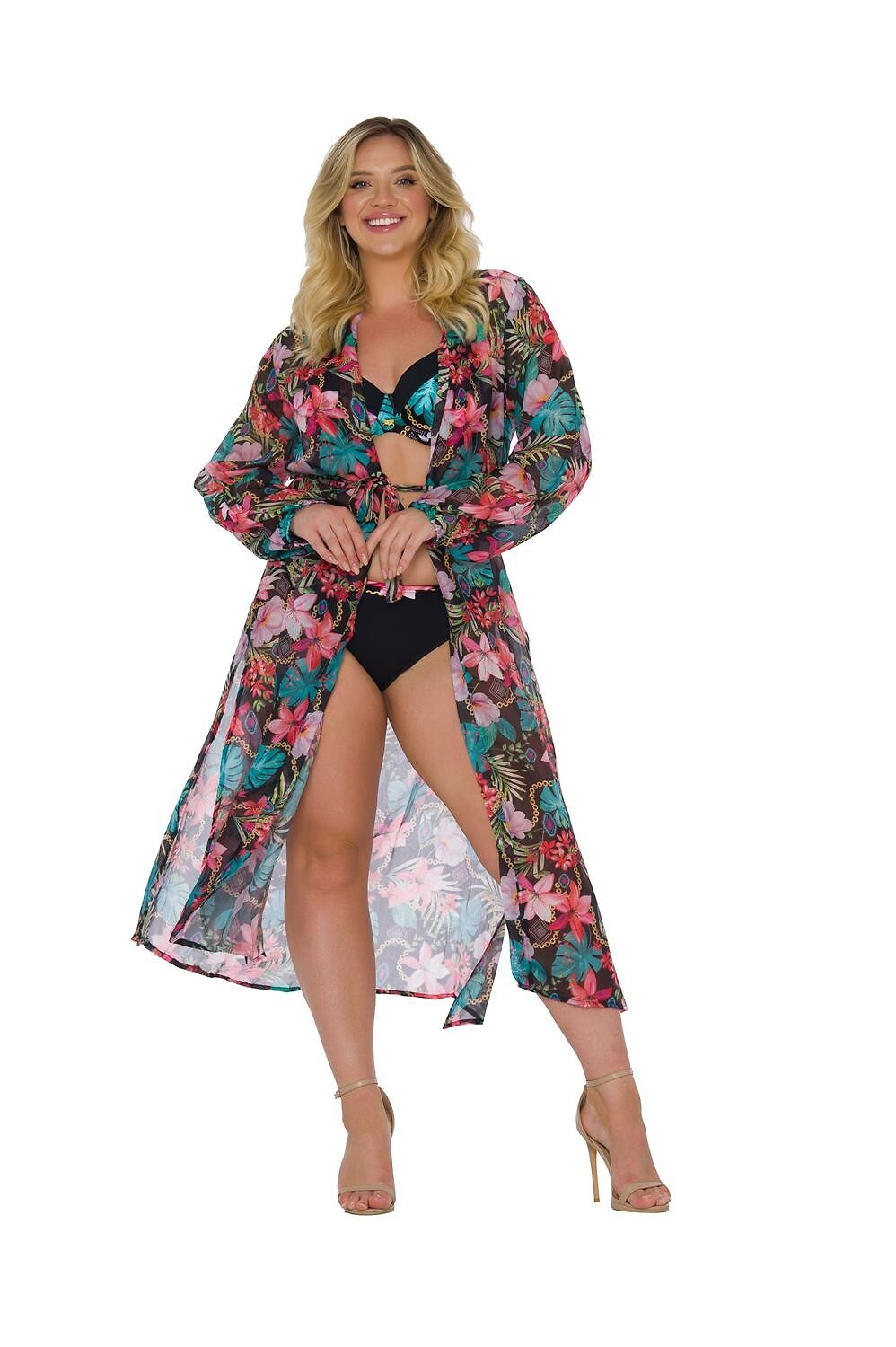 Dámské pareo tunikového typu - vzdušné, elegantní - dlouhé, vzorované - vázané v pase - dlouhé rukávy Složení: 100% polyester