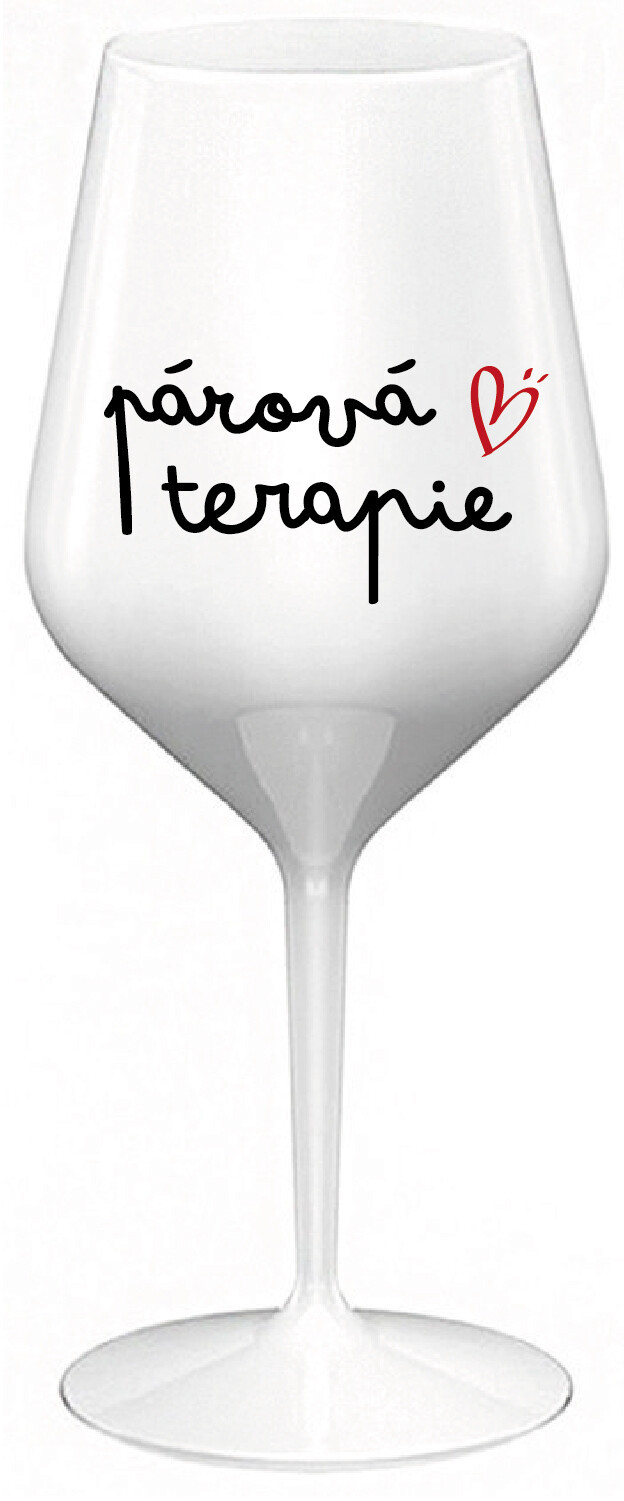 Nerozbitná bílá vinná sklenice s motivem PÁROVÁ TERAPIE je skvělá na zahradu, pláž, výlet, piknik a parádu udělá i při kempování. Jelikož je vyrobená z kvalitního polykarbonátu je de facto nerozbitná. Je to luxusní kousek, s nímž si víno můžete vychutnat prostě kdekoliv. Mají ergonomický tvar, který příjemně padne do ruky a protože je lehká, usnadňuje to její přenášení. Je snadno skladovatelná a lehce se čistí. Díky svému designu si s ní můžete vychutnat doopravdy kdekoliv bezproblémové pití výborného vína. Materiál PP. Vyrobené s láskou v ČR