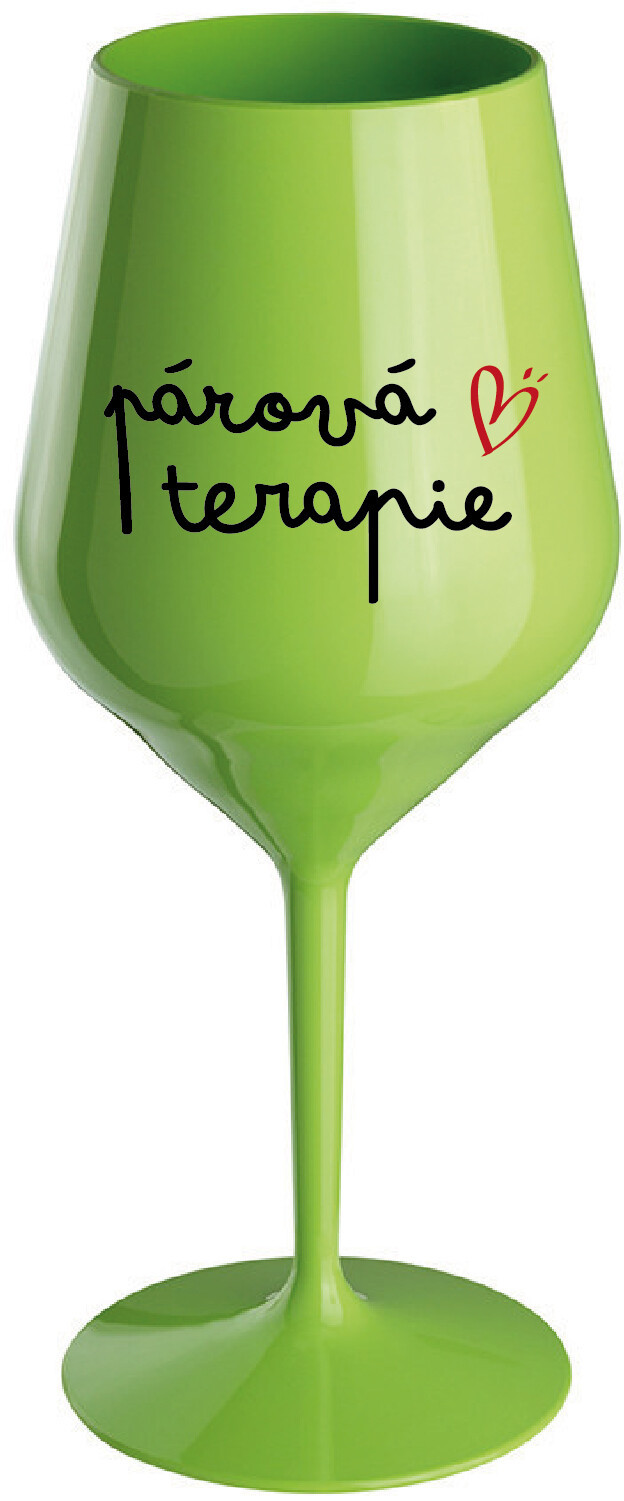 Nerozbitná zelená vinná sklenice s motivem PÁROVÁ TERAPIE je skvělá na zahradu, pláž, výlet, piknik a parádu udělá i při kempování. Jelikož je vyrobená z kvalitního polykarbonátu je de facto nerozbitná. Je to luxusní kousek, s nímž si víno můžete vychutnat prostě kdekoliv. Mají ergonomický tvar, který příjemně padne do ruky a protože je lehká, usnadňuje to její přenášení. Je snadno skladovatelná a lehce se čistí. Díky svému designu si s ní můžete vychutnat doopravdy kdekoliv bezproblémové pití výborného vína. Materiál PP. Vyrobené s láskou v ČR