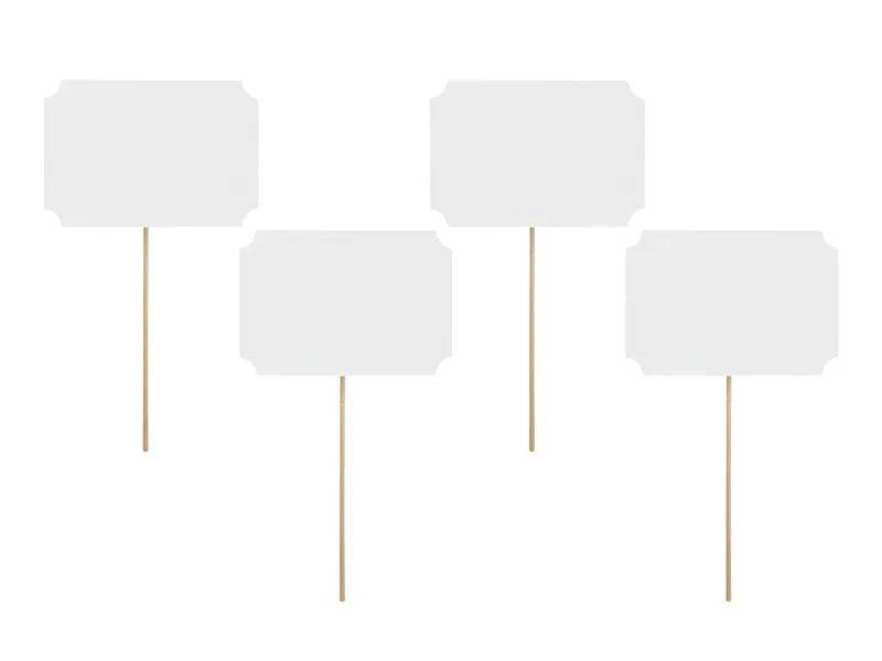 PartyDeco Bílé kartičky na špejli (4 ks)
