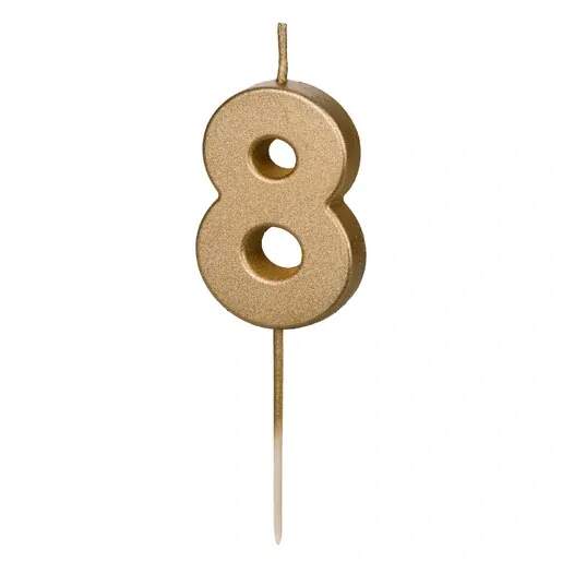Zlatá svíčka v moderním vzhledu ozdobí každý slavnostní dort! Zápich pro svíčku je vyroben ze dřeva, schválený pro styk s potravinami. Výška svíčky bez zápichu je 4,5 cm.