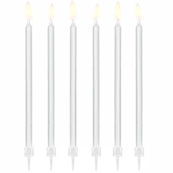 Svíčky pro ozdobu každého dortu či sladkého dezertu. Výška svíčky je 14 cm. Balení obsahuje 12 ks svíček a také 12 ks plastových držáků.