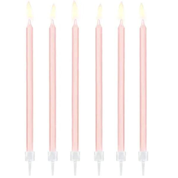 Svíčky pro ozdobu každého dortu či sladkého dezertu. Výška svíčky je 14 cm. Balení obsahuje 12 ks svíček a také 12 ks plastových držáků.