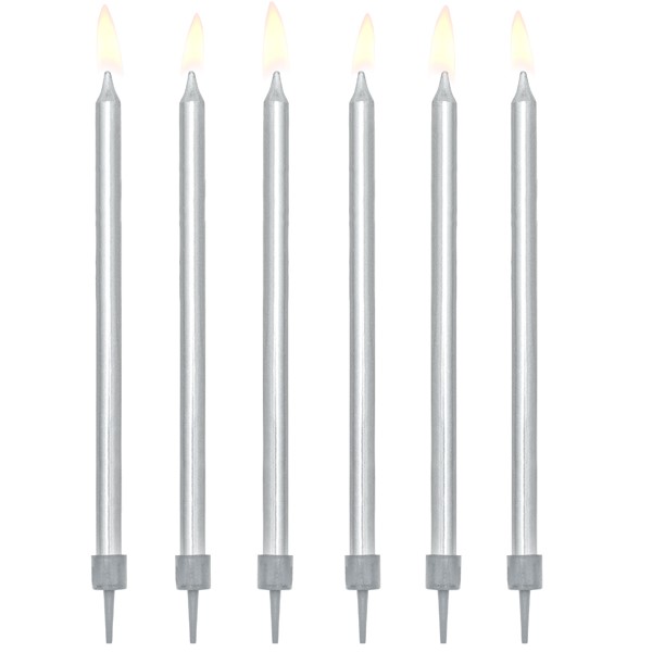 Svíčky pro ozdobu každého dortu či sladkého dezertu. Výška svíčky je 12,5 cm. Balení obsahuje 12 ks svíček a také 12 ks plastových držáků.