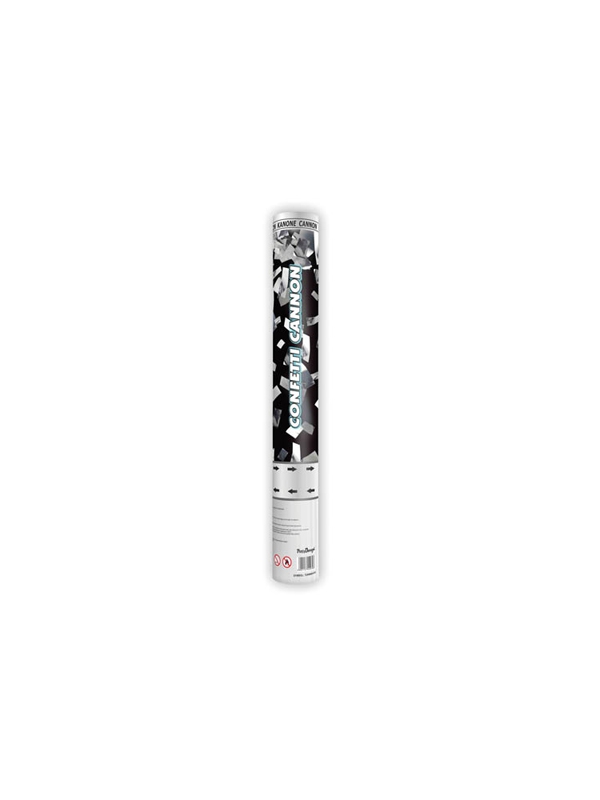 Vystřelovací konfety stříbrné 40 cm. Dostřel konfet je 5-8 m.