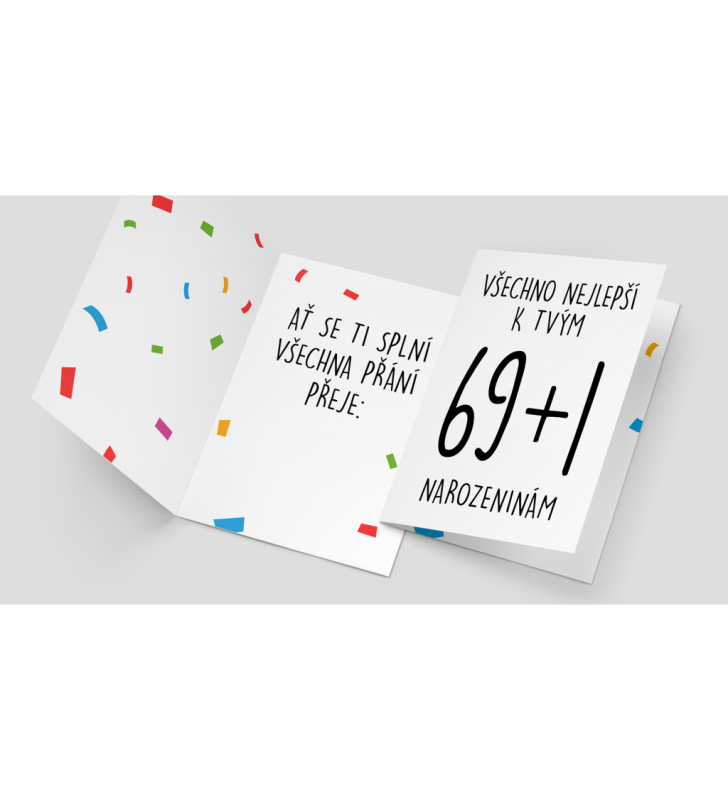 Naše vtipná narozeninová přání s kreativním číselným vyjádřením věku, jako například 69+1 místo tradiční padesátky, rozesmějí každého oslavence!