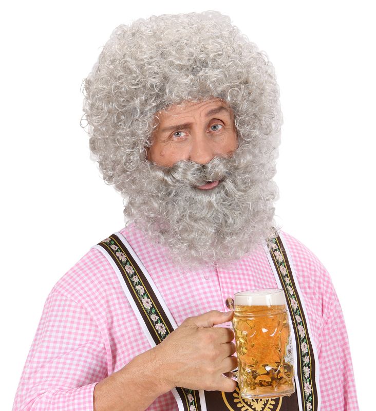 Karnevalová paruka a vousy. Vousy se uchytí gumičkou za uši. Doplněk k převleku kapitána, loupežníka, dobrodruha.... Barva: šedivá Určeno pro: pánská Typ paruky: kudrnatá Materiál: 100% polyester