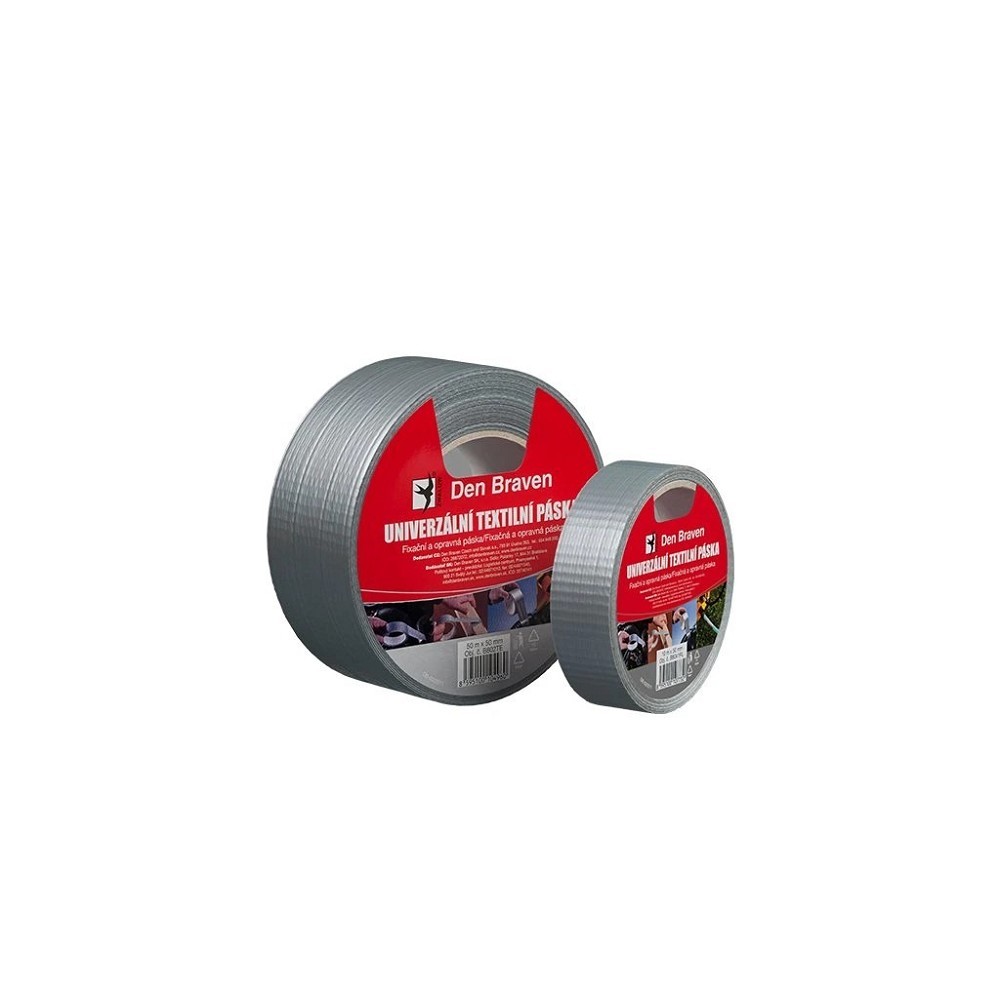 Páska lepící univerzální Den Braven 50 mm x 50 m B802TE Pro veškeré nouzové opravy nebo montáže a lepení v interiéru i exteriéru v hobby sféře. Je pevná, vodovzdorná, snadno a okamžitě použitelná. Nosičem je laminovaný polyetylén na bavlněné textilní mřížce s nánosem vysoce lepivého kaučukového filmu. Používá se pro bandážování a ovíjení potrubí při napojování tepelné izolace, opravy poškozených a roztržených plachet stanů, celt a automobilových plachet. Opravy roztržených fóliovníků, upevňování a fixace chráničů apod.