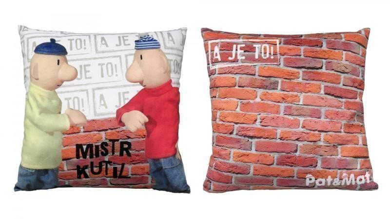 Měkoučký polštářek s oboustranným potiskem motivem oblíbených kutilů Pata a Mata. Vhodný do postýlky, na cesty i jako dekorace do pokojíčku. Materiál mikrovelur, obrázek tisk, náplň duté vlákno. Praní na 30°C, 100% polyester. Vyrobeno ručně v ČR. Pro děti bez omezení věku.