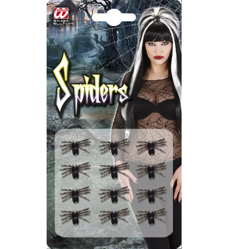 Pavoučci 12ks 12 plastových pavoučků. Halloweenská dekorace. Materiál: 100% PVC Velikost: cca. 2cm
