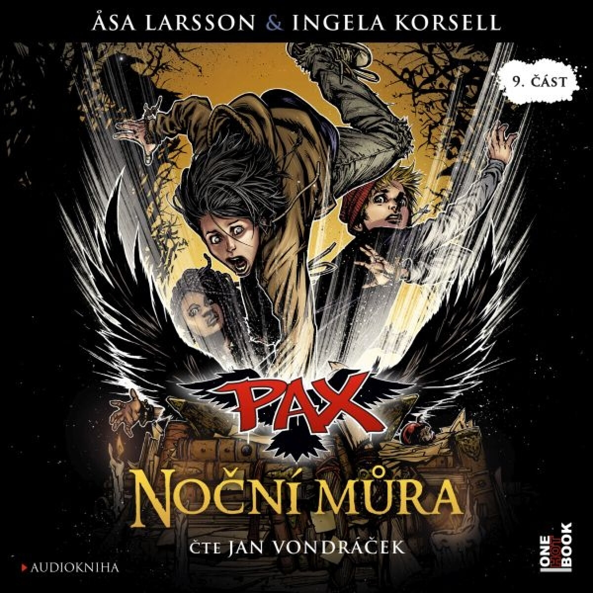 Audiokniha: Konec se blíží! Černá čarodějnice potřebuje získat šifrovací klíč schovaný v magické knihovně, a proto uzavře dohodu s Noční můrou. Estrid usíná a její strážce snů se ocitá mimo hru. Zachránit ho mohou jen Alrik s Viggem. Iris je však varuje. Vstoupit do světa snů je velmi nebezpečné: kdo tam zemře, zemře doopravdy. Podaří se krkavčím bratrům vrátit zpět? Noční můra je devátý díl série PAX! Pro posluchače od deseti let. „Noční můra je parazit, jež trápí lidi ve spánku a způsobuje jim nepředstavitelná muka, divadlo hrůzy i nepříjemné vjemy. Většinou vyleze na hrudník nebo záda postiženého, až nemůže téměř dýchat. Zaklekne oběť. Následně Můře narostou místo rukou křídla, jež zaplete do vlasů nešťastníka, a tak pronikne do jeho intimních snů. Tím člověk padne do osidel Můry, a ta pak žije z jeho emocí a fyzického strachu. Jako upír z čerstvé krve.“ – vlcibouda.net „Tahle série mě nepřestává bavit. Líbí se mi, jak se autoři s chutí pustili do příběhu, který je určen čtenářům cca od deseti let, ale určitě si ho oblíbí i spousta starších a dospělejších. Já zítra slavím 4x doporučený věk čtenářů a stejně jsem naprosto odvařená z tohoto čtení a mám za to, že Pax zůstane v mém srdci.“ – Dara, daramegan.cz „Tohle prostě nemůže dopadnout dobře.“ - čtenářka Sára, 12 let