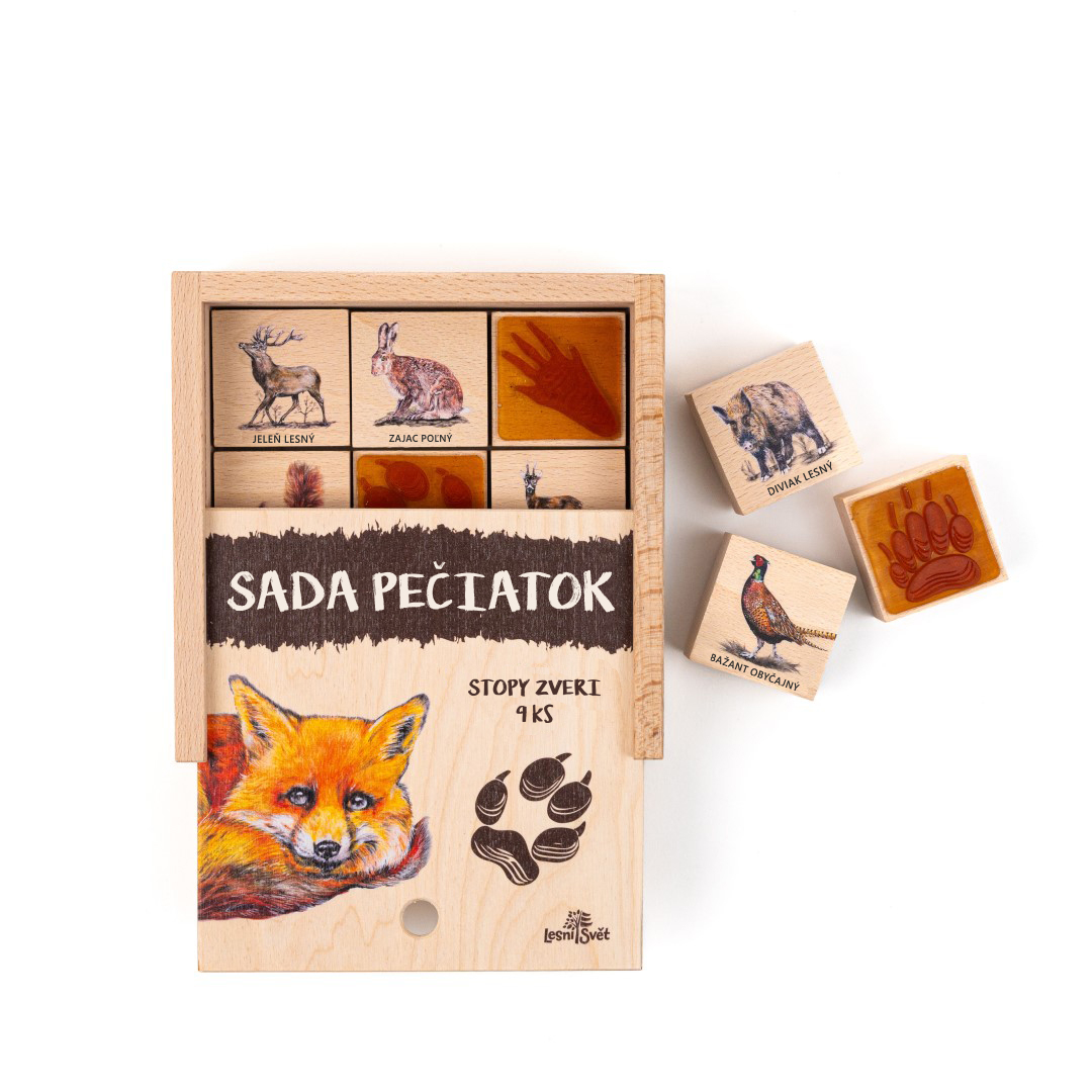 Rozvíjajte detskú fantáziu Pečiatkovanie je kúzelná činnosť, ktorá deti prirodzene vtiahne do sveta tvorenia! Stačí chvíľka a z obyčajného papiera sa stane príbeh plný nápadov. Pečiatkovanie pomáha rozvíjať jemnú motoriku. Podporuje koordináciu ruky a očí. Učia deti spoznávať nové tvary. Pečiatky sú skvelým pomocníkom nielen pri volnom tvorení, ale aj v predškolskej a školskej výučbe. Či už je to doma, v škôlke alebo v tábore Možno ich využiť pri hravom zoznamovaní s prírodou, deti môžu razítkami označovať pracovné listy, vytvárať vlastné knižky a pod. Pečiatky z Lesného sveta 9 drevených pečiatok so stopami zveri Veľkosť pečiatok: 4,5×4,5 cm – ideálna pre detskú rúčku Prírodná drevená kocka s hladkým opracovaním (certifikát PEFC) Drevené krabička z masívu s vysúvacím vekom 16 x 16 x 4 cm České výrobky z Hradca Králové Originálne obrázky od českých ilustrátorov Motívy pečiatok: zajac poľný, jeleň európsky, bažant obyčajný, srnec obyčajný, prasa divoké, ježko západné, líška obyčajná, veverička obyčajná, jazvec lesný Jirka Novák, maliar a ilustrátor Tvoria prevažne realistické kresby fauny a flóry. Ilustrátor učebných pomôcok, náučných tabúľ a hier s tématikou českých živočíchov. Viac o Jirkovi Tipy na pečiatkovanie Pečiatky otvárajú deťom i dospelým nekonečné možnosti tvorenia! Tu sú tri inšpirácie, ako pečiatky využiť naplno: ✅ Tlač na papier a kartón. Vytvárajte obrázky plné lesných zvieratiek, ilustrujte vlastné rozprávky a komiksy. Vyrobte si originálne pohľadnice, visačky na darčeky alebo obaly na zošity. ✅ Odtlačok do rýchloschnúcej hmoty. Vytvorte si vlastné dekorácie alebo prívesky na kľúče. Z odtlačkov vyrobte originálne pečate na darčeky či listy. Experimentujte s náterom. ✅ Tlač do plastelíny. Pomáha deťom rozvíjať jemnú motoriku a vnímať rôzne textúry. Skvelá aktivita pre predškolákov. Môže sa hodiť Papierové bloky Nemáte po ruke prázdny papier na pečiatkovanie? Naše bloky sú z ekologického papiera a navyše s krásnymi ilustráciami. Dostupné vo veľkostiach A4, A5 aj A6. Papierové bloky VšudyLEPKY Neobyčajné originálne samolepky s motívmi zvierat ľahko doplnia pečiatkovanie o nový prvok. VšadeLEPKU môžete opakovane premiestňovať. VšudyLEPKY Vylomeniny Obľúbený doplnok sensory play. Deti milujú svet fantázie. A zvieratká vyzerajú skutočne ako živé. Ľahko s nimi dotvoríte príbeh na papieri aj mimo neho. Vylomeniny