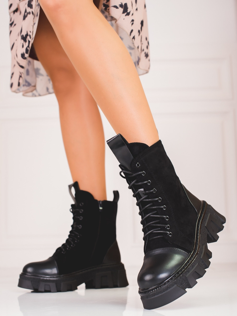Pěkné dámské černé kotníčkové boty na plochém podpatku 37