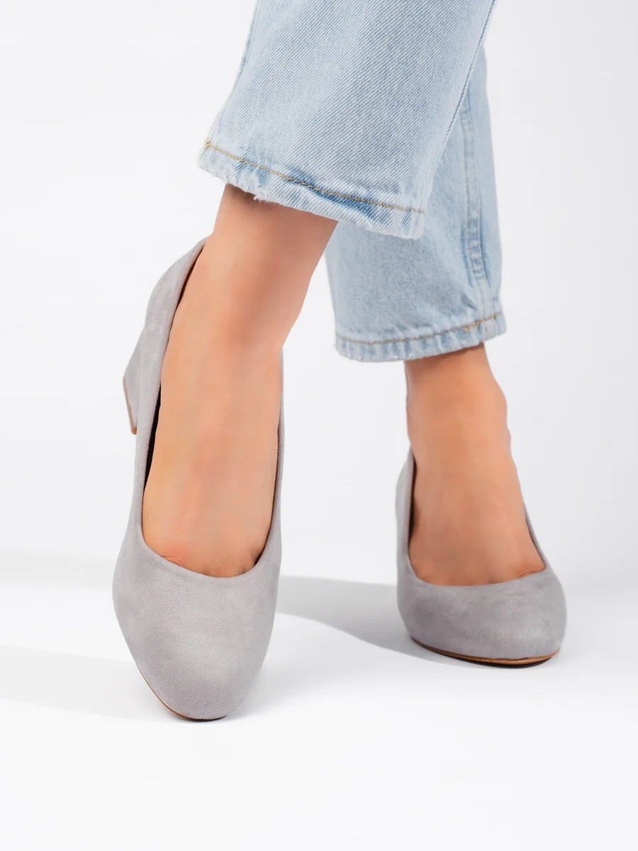 Pěkné dámské lodičky šedo-stříbrné na širokém podpatku 36