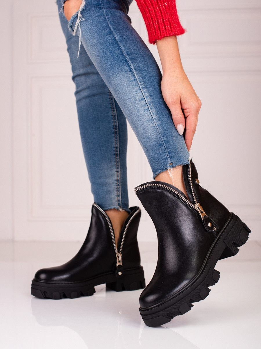 Pěkné kotníčkové boty černé dámské na plochém podpatku 36