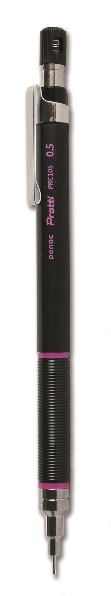 Mikrotužka Penac Protti s kovovou objímkou pro přesné linky při rýsování, šrafování, skicování, psaní i kreslení je opatřena unikátním mechanismem. Jakmile potřebujete tuhu posunout, stačí zatlačit na hrot mikrotužky a tuha se sama posune. Mechanismus umožňuje jednoduše posouvat tuhu dál do hrotu a zároveň udrží i velmi krátké tuhy, čímž umožňuje využít tuhu na maximum. Jedním přitlačením hrotu k podložce uvolníte tuhu o délce 1 mm, která zajistí 5 m psaní. Kovový hrot je plně zasouvací a tím je chráněn proti možnému poškození. Na stiskací straně mikrotužky naleznete indikátor tvrdosti vložené tuhy - otočením vroubkovaného krytu pryže do příslušné polohy si můžete zvolit, jakou tvrdost aktuálně v mikrotužce používáte (B, HB, F, H, 2H, 3H). Protiskluzový úchop ve formě vroubkování, kovový klip, pryž bez silikonu a PVC. Dodáváno v papírové krabičce. Šíře: 0,5 mm. Vyrobeno v Japonsku.