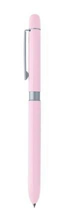 Dárkové multifunkční pero Penac Multisync kombinuje modré a červené kuličkové pero s mikrotužkou. Elegantní dámské pero 3v1 v pastelových barvách má štíhlé kovové tělo, jehož jednoduchý design doplňují decentní kovové prvky v matné šedé barvě. Jednotlivé psací potřeby lze snadno volit díky kvalitnímu 360° otočnému mechanismu. Dokumentní inkoust Penac Mach (dle DIN ISO 12757/2) zajišťuje plynulé a hladké psaní. Pero obsahuje pryž bez latexu a PVC a mikrotužku s tuhou 0,5 mm. Náplně včetně pryže jsou vyměnitelné. Dodáváno v papírové dárkové krabičce. Šíře stopy kuličkového pera: 0, 35 mm. Vyrobeno v Japonsku.