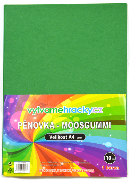 Dekorační guma je oblíbený dekorační materiál pro malé i velké. Lze snadno stříhat nůžkami, ohýbat, lepit lepidlem na vodní bázi. Lze kombinovat například s lepenkou, žinylkovými drátky nebo pohyblivýma očima. Díky své tloušťce je vhodný také pro výrobu trojrozměrných tvarů. Pěnovou gumu - moosgummi použijete na vystřihování, výrobu razítek či 3D dekorací. Získáte stálobarevné, odolné dekorace. Razítko vyrobíte tak, že vystřihnete cílový obrys a výřez připevníte na rovné dřívko. Při tisku na látku můžete použít buď barvy na textil, nebo barvy na hedvábí, které zahustíte pomocí zahušťovadla. Návod na decoupage: na pěnovku nalepte pomocí lepidla na decoupage ubrousek (jen vrchní potištěnou vrstvu ubrousku) a po zaschnutí vystřihněte obrázek. Zezadu můžete nalepit magnet, či použít na jiné dekorace - nalepit na krabičky apod. Cena za 1 balení (10ks) pěnovky Tloušťka: 2 mm Nevhodné pro děti do 3 let. Upozornění: Tuto pěnovku lze koupit i jednotlivě po kusech. Zakupte produkt Pěnovka A4, tl. ca 2mm - tmavě zelená, 10ks z kategorie Výtvarné potřeby | Kreativita | Pěnové gumy | Pěnovka archy od výrobce vytvarnehracky.cz za cenu 62 Kč.