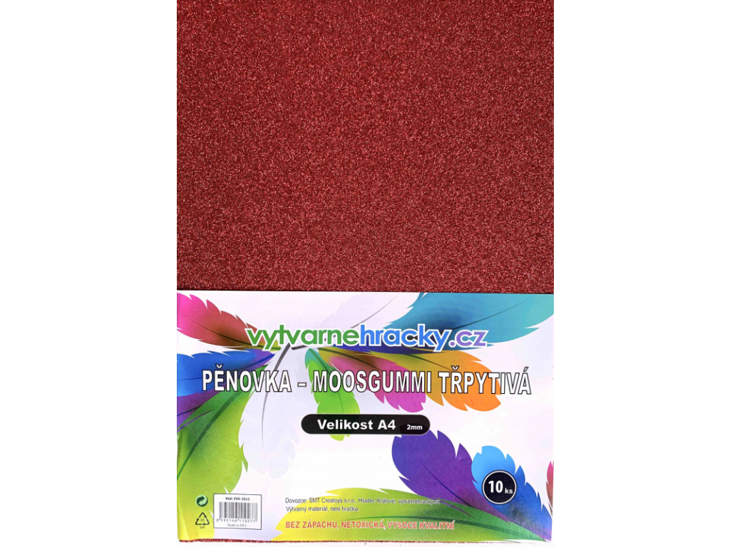 Dekorační guma je oblíbený dekorační materiál pro malé i velké. Lze snadno stříhat nůžkami, ohýbat, lepit lepidlem na vodní bázi. Lze kombinovat například s lepenkou, žinylkovými drátky nebo pohyblivýma očima. Díky své tloušťce je vhodný také pro výrobu trojrozměrných tvarů. Pěnovou gumu - moosgummi použijete na vystřihování, výrobu razítek či 3D dekorací. Získáte stálobarevné, odolné dekorace. Razítko vyrobíte tak, že vystřihnete cílový obrys a výřez připevníte na rovné dřívko. Třpytivý povrch přináší do vašich projektů kouzelný a elegantní vzhled, který vynikne na přáníčkách, dekoracích, výrobcích pro scrapbooking nebo personalizovaných dárcích. Pěnovka je lehká, flexibilní a snadno se s ní pracuje – můžete ji stříhat, lepit, malovat nebo dekorovat podle vlastní fantazie. Cena za 1 balení (10ks) pěnovky Tloušťka: 2 mm Nevhodné pro děti do 3 let. Zakupte produkt Pěnovka třpytivá A4, tl. ca 2mm - červená, 10ks z kategorie Výtvarné potřeby | Kreativita | Pěnové gumy | Pěnovka archy od výrobce vytvarnehracky.cz za cenu 89 Kč.
