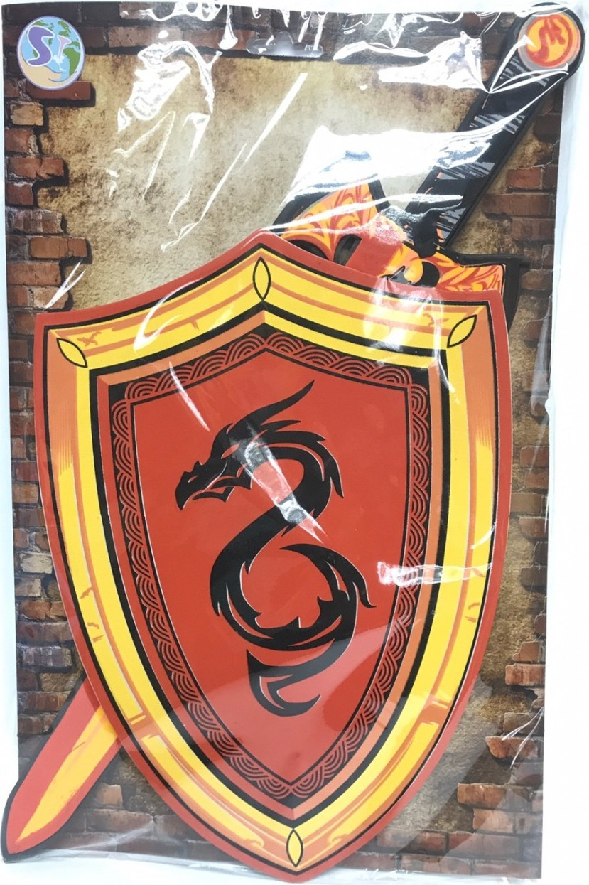 „Dětský pěnový meč a štít s motivem draka pro malého samuraje. Souprava je vyrobena z pěny a je velmi bezpečná. Vhodné jako doplněk ke karnevalovému kostýmu.“