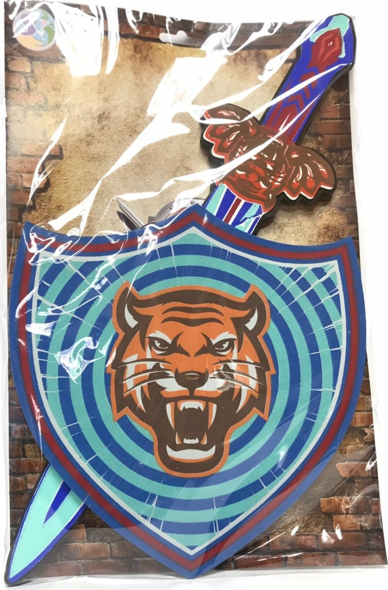 „Dětský pěnový meč a štít s motivem tygra pro malého samuraje. Souprava je vyrobena z pěny a je velmi bezpečná. Vhodné jako doplněk ke karnevalovému kostýmu.“