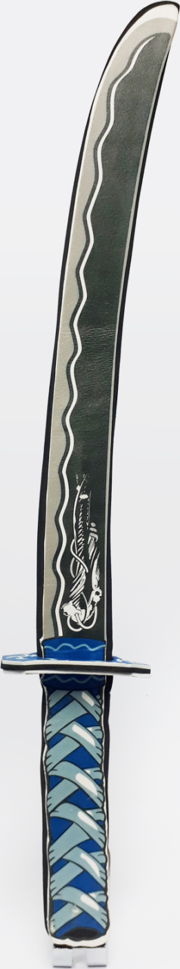 „Dětský pěnový meč v designu Ninja v červené a modré barvě pro malého rytíře. Meč je vyroben z pěny a je velmi bezpečný. Vhodné jako doplněk ke karnevalovému kostýmu.“