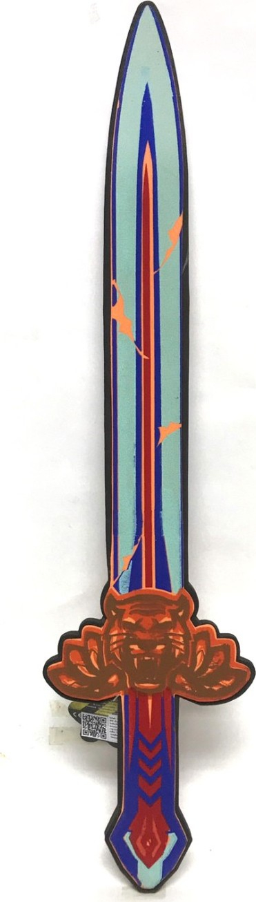 „Dětský pěnový meč v designu tygra pro malého rytíře. Meč je vyroben z pěny a je velmi bezpečný. Vhodné jako doplněk ke karnevalovému kostýmu.“