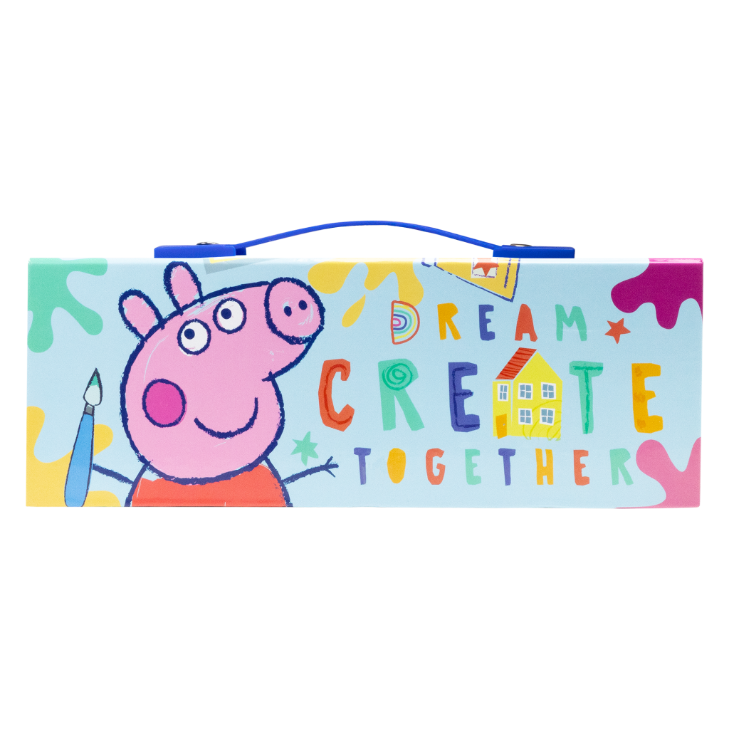 Báječný kreativní box nabitý výtvarnými potřebami. Třípatrový praktický box obsahuje vodovky, malířskou paletu, štětec, houbičku, 8 fixů, 8× zvýrazňovač, 8× pero, 8× pastelek, ořezávátko a gumu