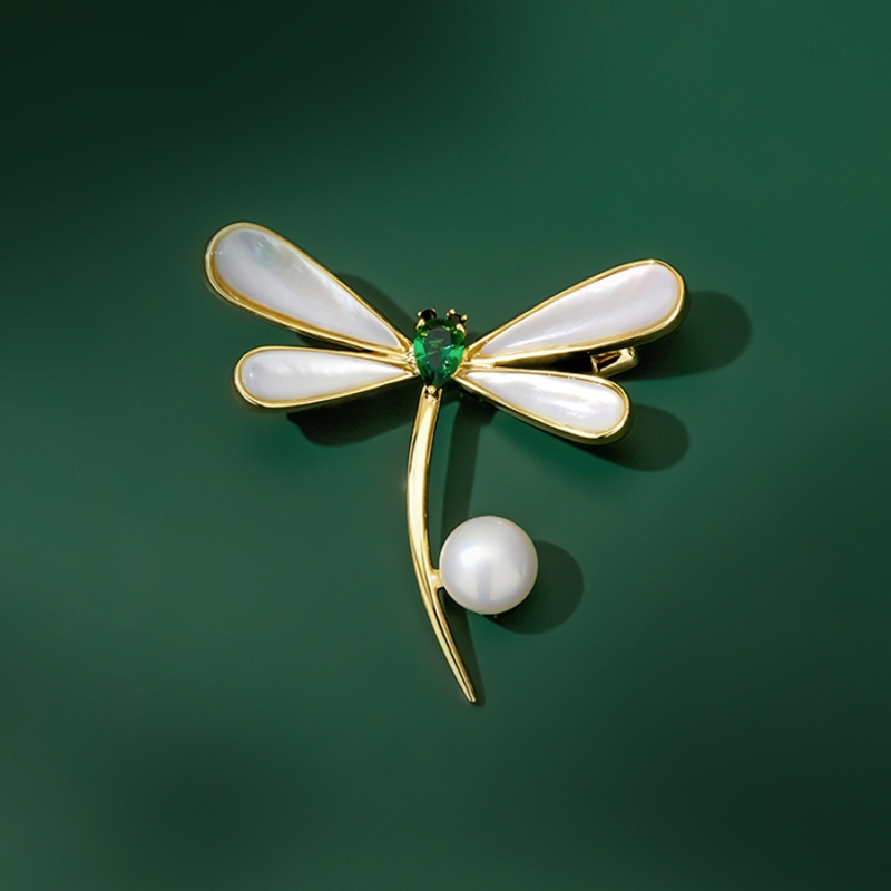 Nadšení v každé milovnici originálně zpracovaných šperků vzbudí tato překrásná brož Francoa v podobě vážky. Brož je ručně osázena smaragdovým krystalem Swarovski a bílou shell perlou.Křídla vážky jsou vyrobeny z pravé perleti. Doplňte jí jakékoliv své oblečení a máte jistotu, že budete vypadat neodolatelně. Brož je do detailu propracovaná a firma Éternelle vdechla broži exkluzivitu, kterou podtrhávají detaily s 18karátovým pozlacením. Brož představuje spojení elegance a unikátnosti, jemnost a krása jsou její hlavní přednosti. Ozdobte i vy svou večerní róbu tímto luxusním doplňkem a staňte se hvězdou společnosti. Brož balíme zdarma do pěkné dárkové krabičky a je tak ideálním dárkem pro každou výjimečnou ženu.